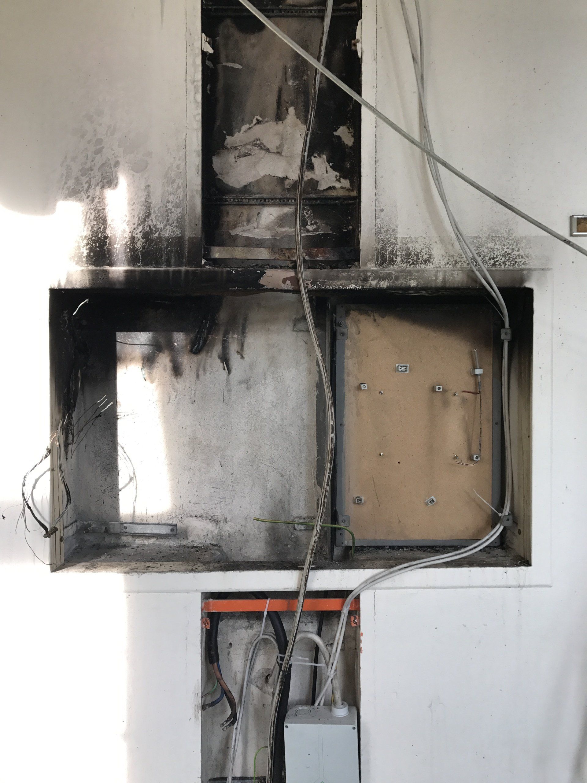 In diesem Objekt mussten wir eine alte ausgebrannte Etagenverteilung mit kleinem Fernmeldeabteil komplett ersetzen.